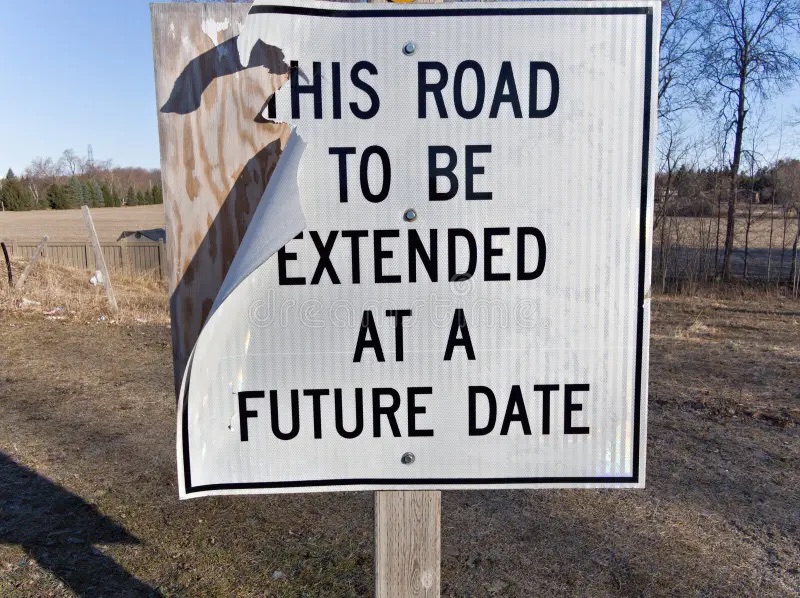 Notice they keep promising but never delivering. The image with this post graphically represents what is happening: They keep promising that the road will be built, and they want us to keep investing money into the road, and they keep telling us how great the road will be, and even posting AI generated images of what it will look like, but they never actually build it.